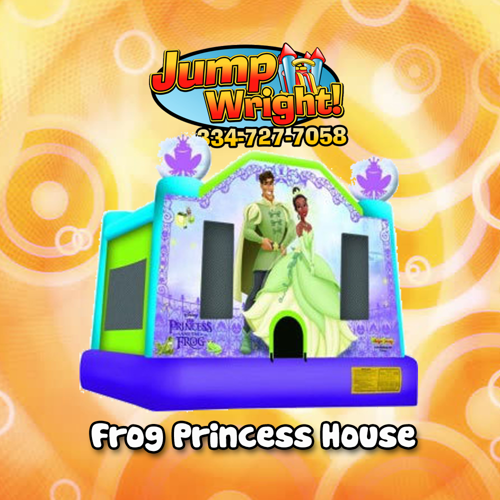This licensed inflatable unit is specifically designed for girls to enjoy a themed Princess & the Frog event!! A picture of Princess Tiana & Prince Naveen are at the entrance of the bounce house to welcome the princess and her guests inside for hours of bouncing fun!