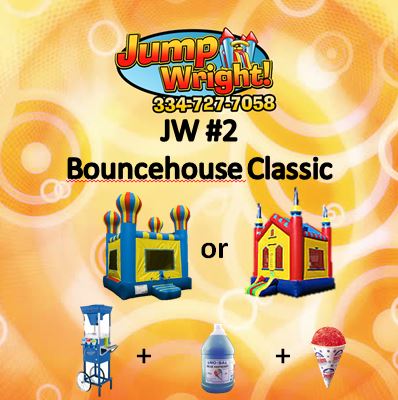 This JW Package deal is perfect for those who are hosting a party and need cool treats for their next event!! The package includes: (1) 13x13 Bouncehouse (Adventure Castle or Castle II) (1) Sno Kone Cart (1) Gallon of Sno Kone Syrup (50) Sno Kone Cups **Applicable delivery fees NOT included**