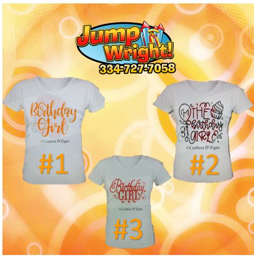 Youth Birthday T-Shirts available as an add-on to any inflatable rental. Sizes: Youth Small, Medium, Large, XLarge Color: White **Custom designs and colors are available upon request for an additional cost.